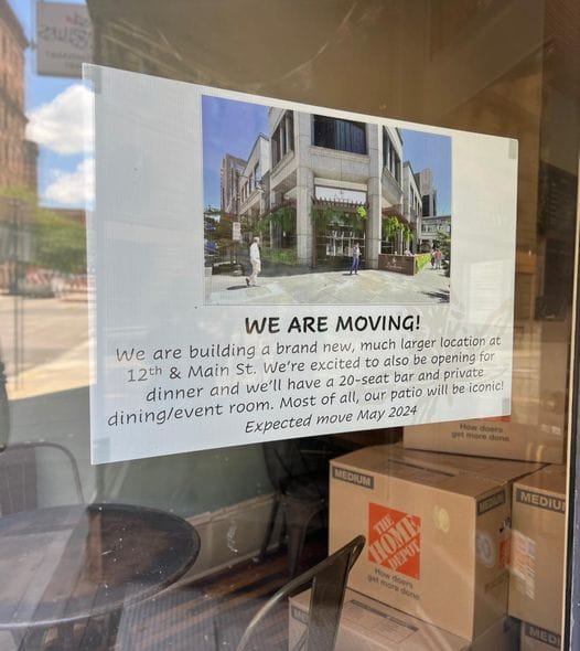 - Banksia has closed their downtown location on 9th Street, but are re-opening this week in a new location! "G'day! The 9th street location is now closed. The NEW location at 12 & Main will be open next week. This new space will be much larger with a 20 seat bar, a private dining/event room and an iconic patio."