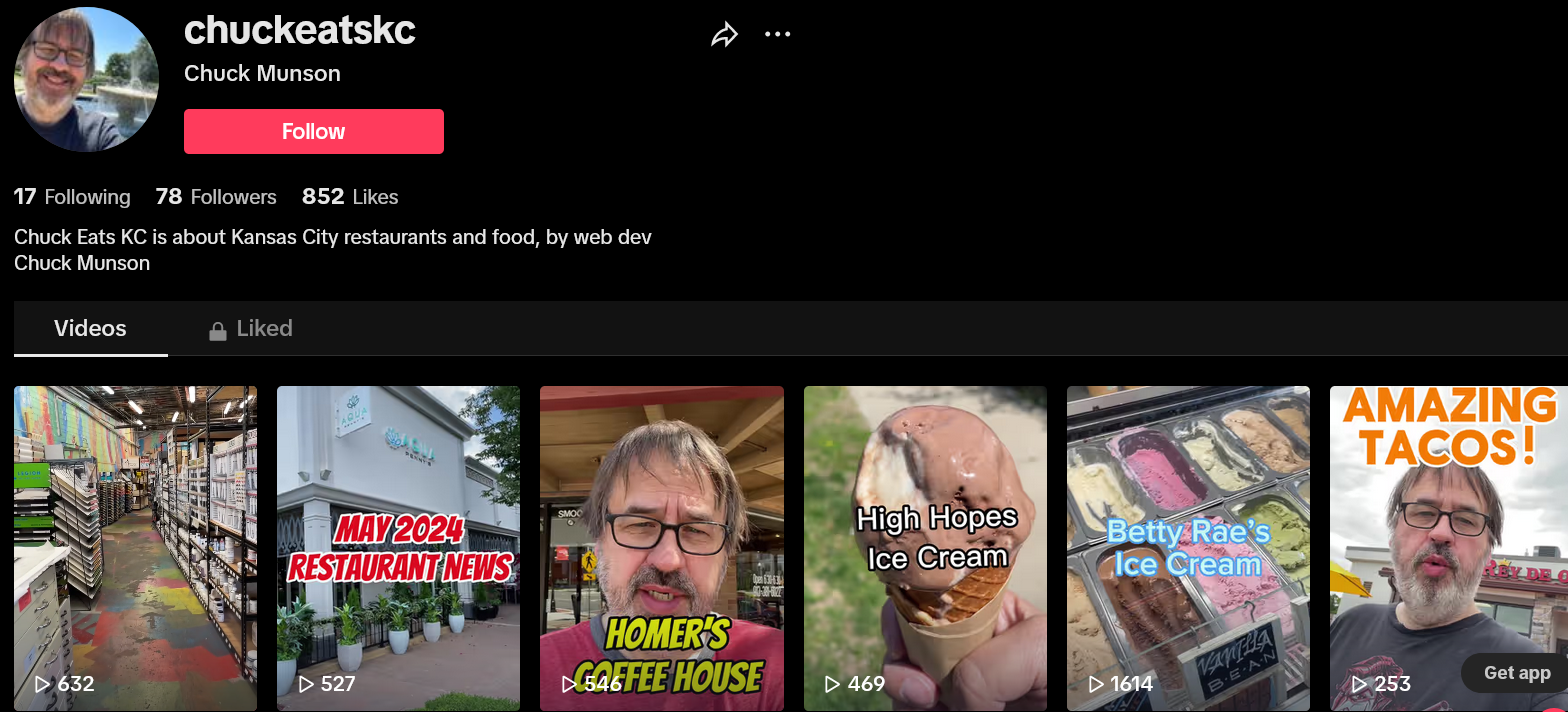 My handle: https://www.tiktok.com/@chuckeatskc