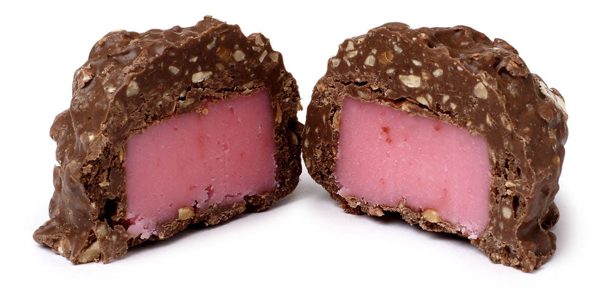 The Cherry Mash was created in 1918 by Ernest Chase and was then manufactured in a factory based in St. Joseph, Missouri. The candy is still produced in that city and the candy and packaging look just the same as when I would get it while trick-or-treating as a kid in south Kansas City. I always enjoyed these cherry candy bars around Halloween, but I don’t recall seeking them out the rest of the year. From what I remember, they are very good and are a refreshing departure from the more famous and popular American chocolate bars. Cherry flavor and chocolate go together quite well.